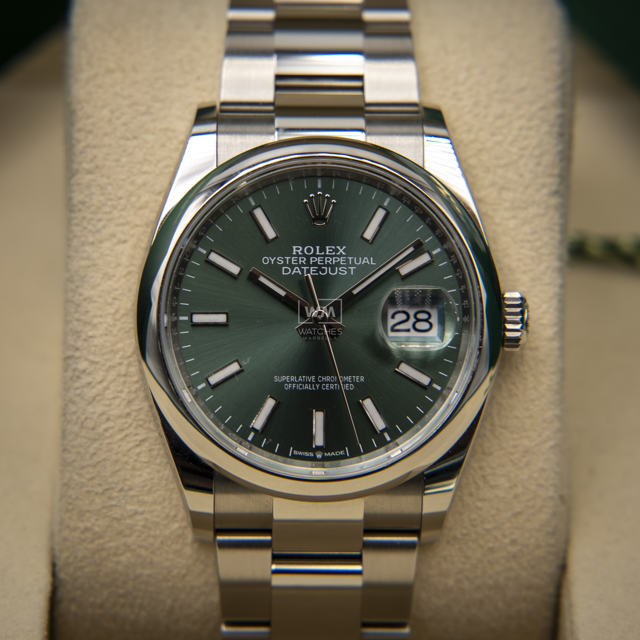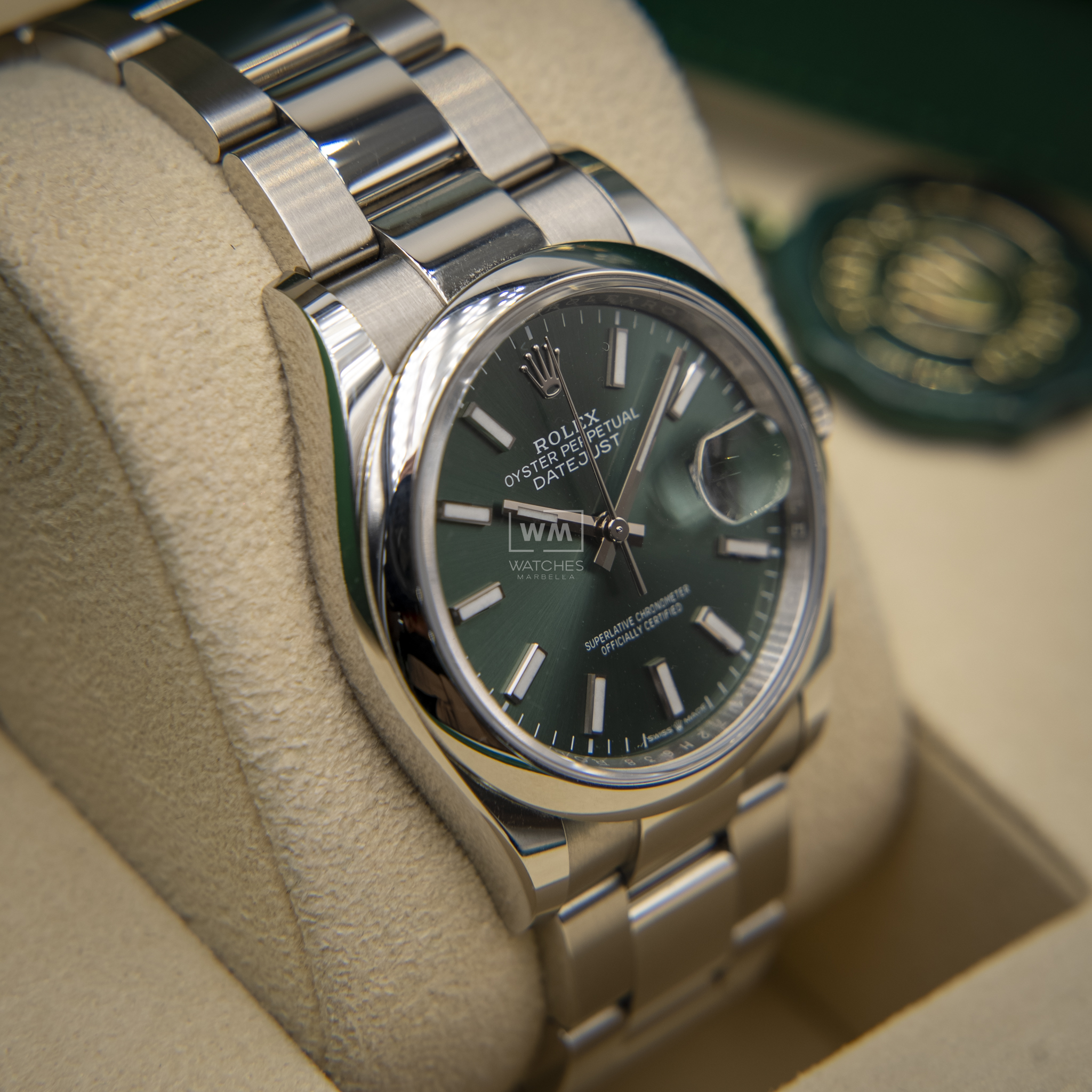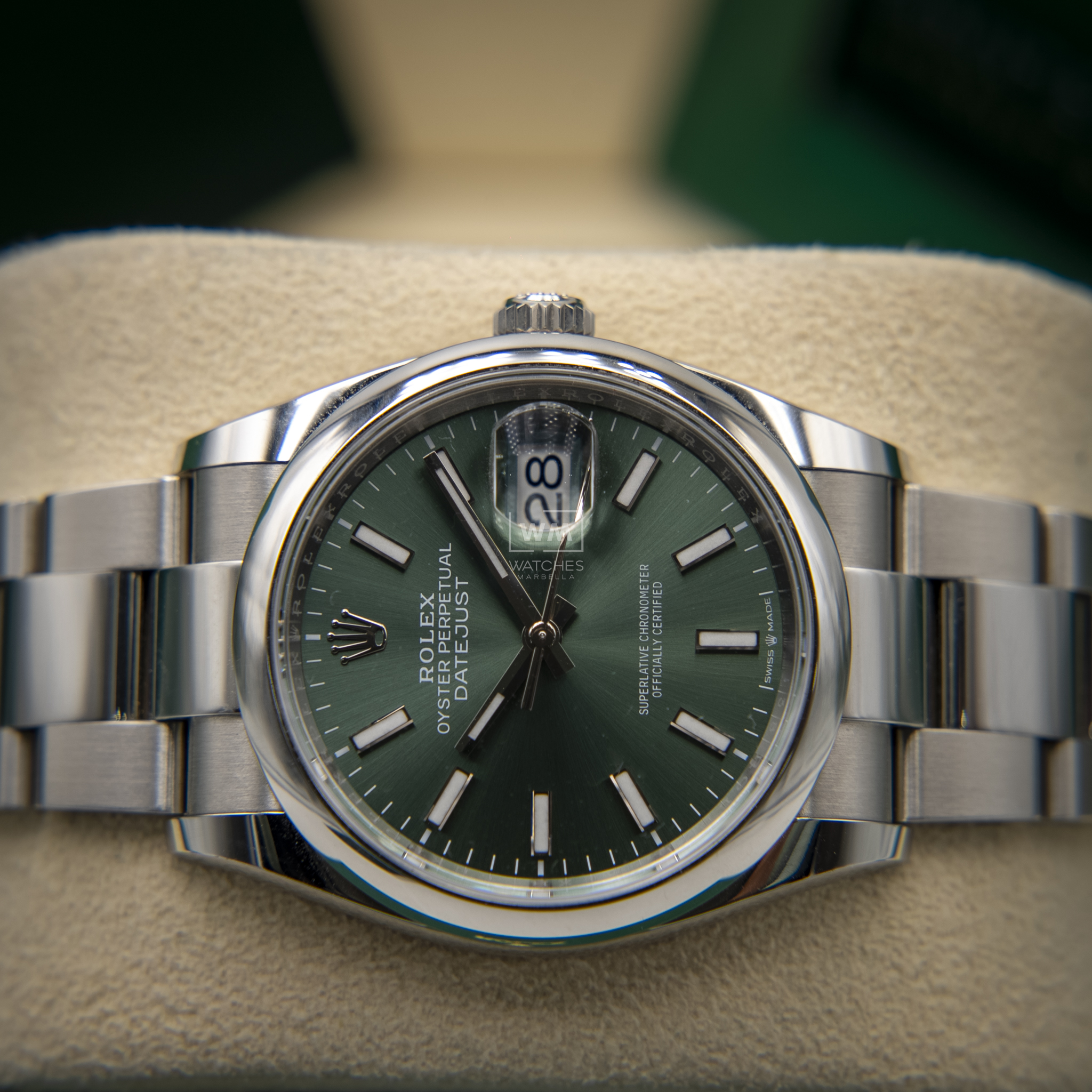 NO vendemos réplicas. Los relojes clasificados como «sin usar» incluirán la caja original, el manual de instrucciones y la tarjeta/certificado de garantía (a menos que se indique lo contrario). Los relojes clasificados como «pre-owned» (de segunda mano) son también verificados como auténticos y en excelente estado de funcionamiento, sin piezas de recambio no originales. Para relojes que no incluyan su caja original, Watches Marbella proporcionará una caja de la tienda.