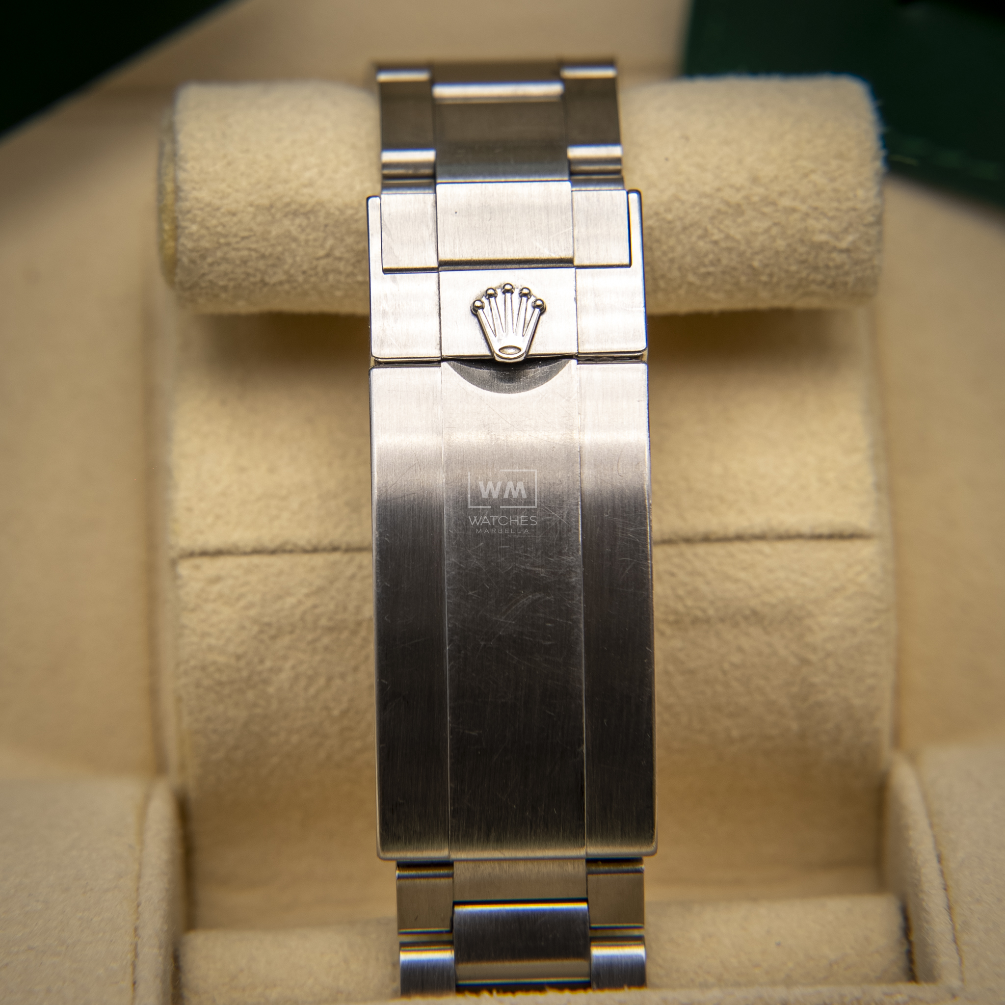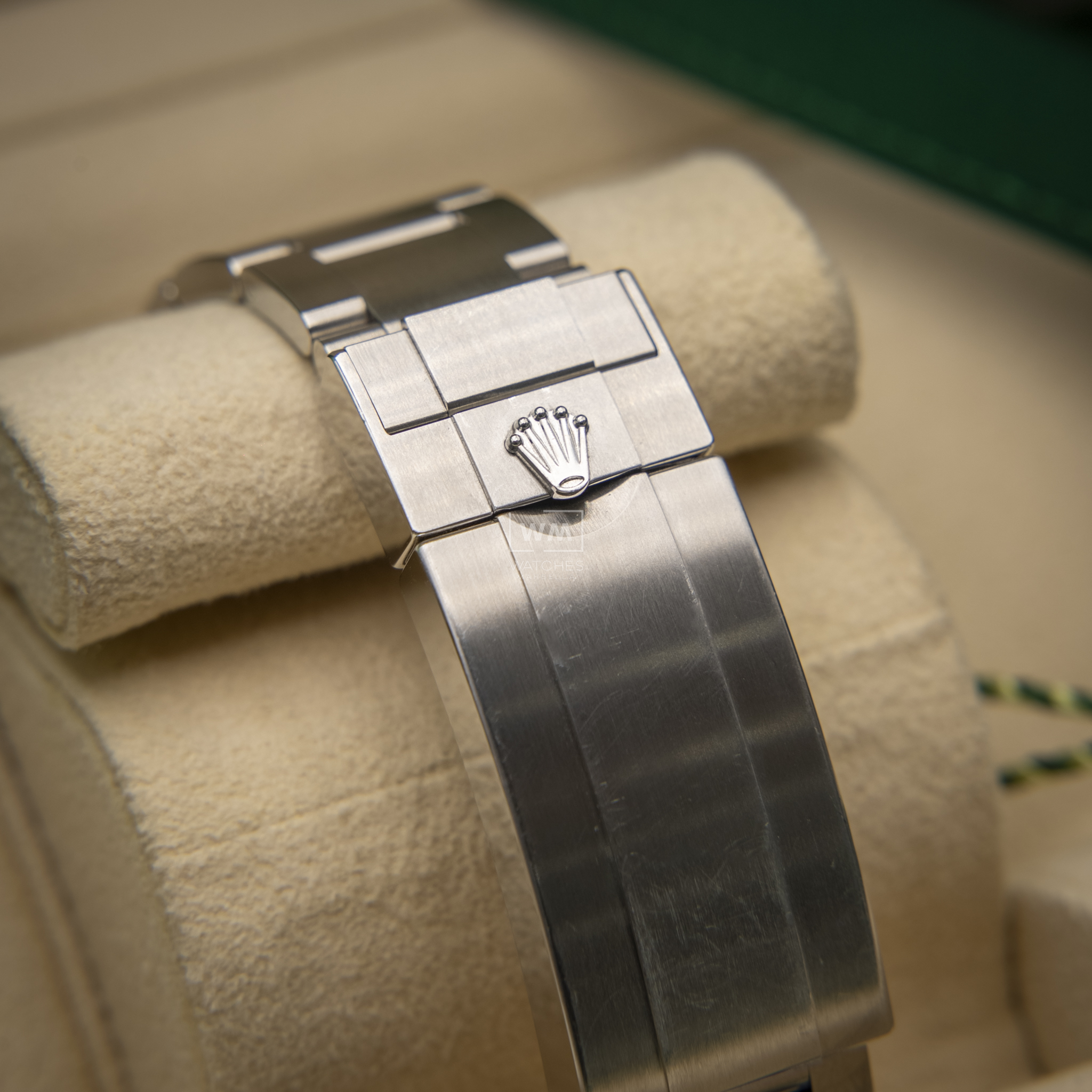 Está equipado con un cierre Oysterlock que evita cualquier apertura accidental, y el ingenioso sistema Glidelock, que permite ajustar con precisión la longitud del brazalete sin necesidad de herramienta alguna. A su vez, permite llevarlo cómodamente sobre un traje de buceo.