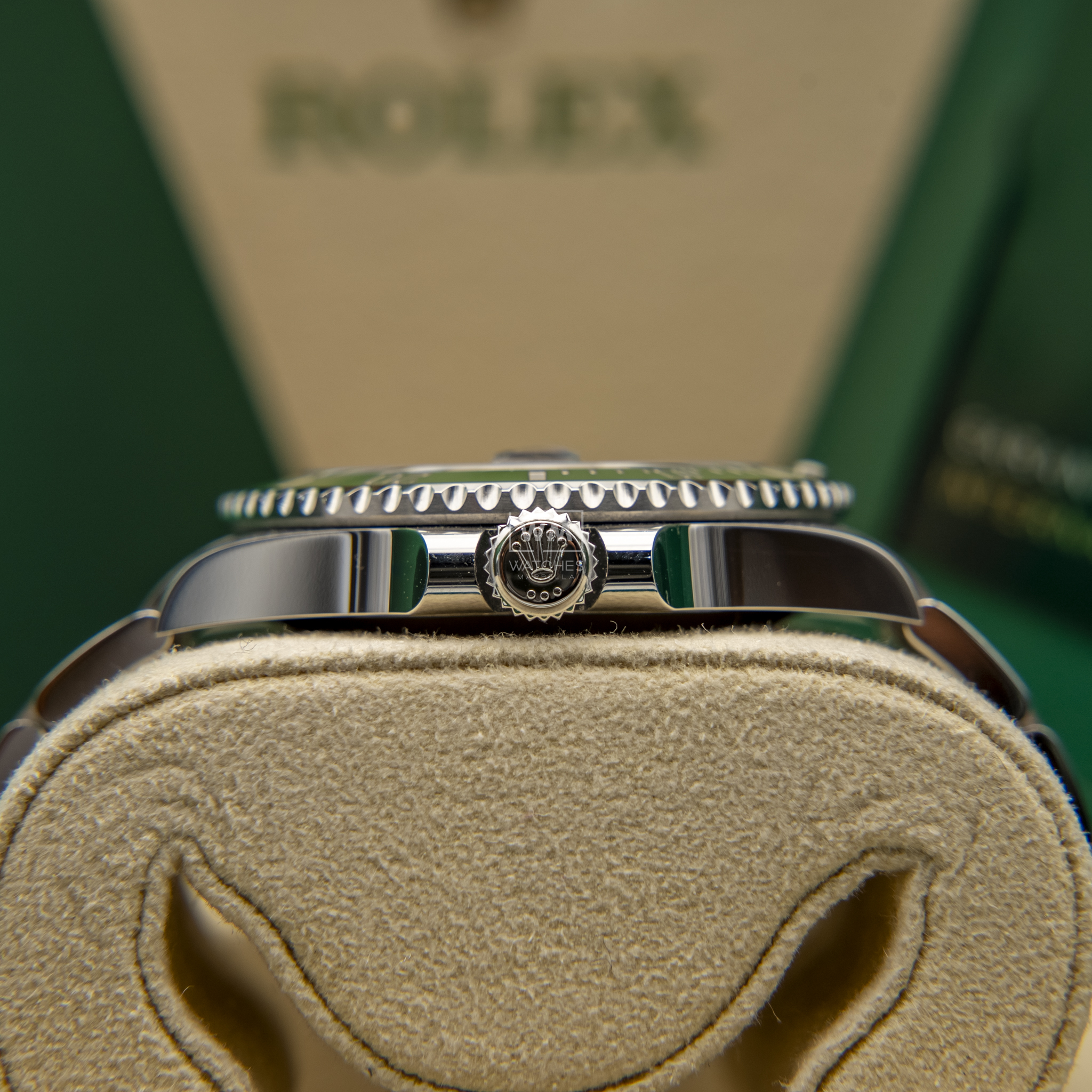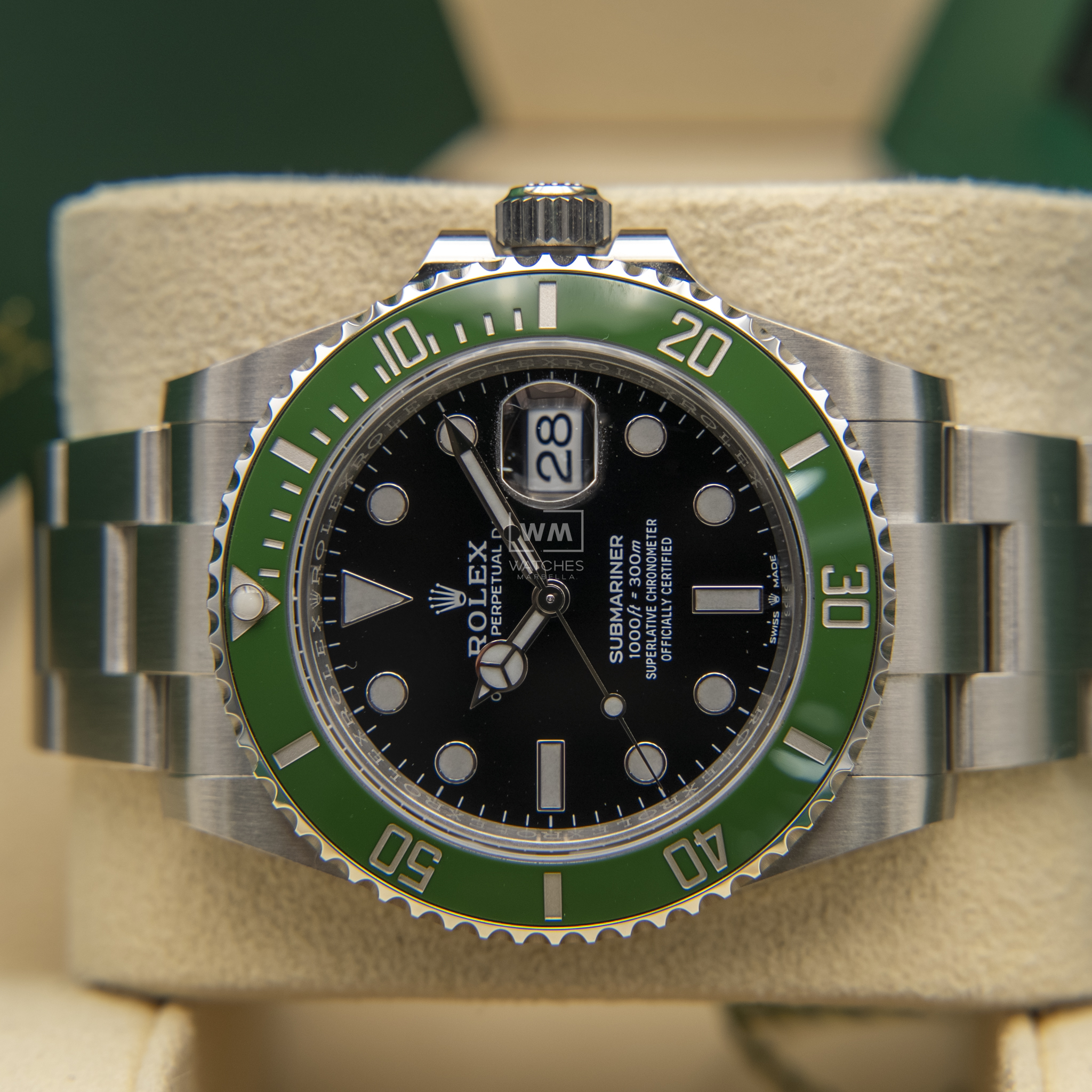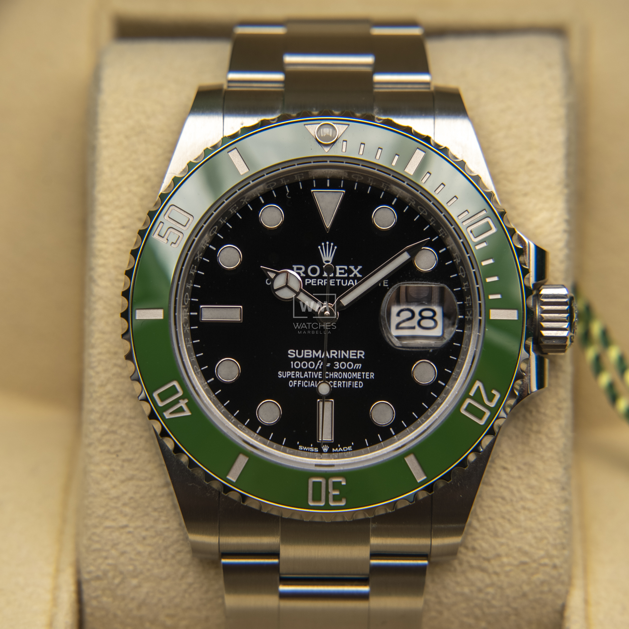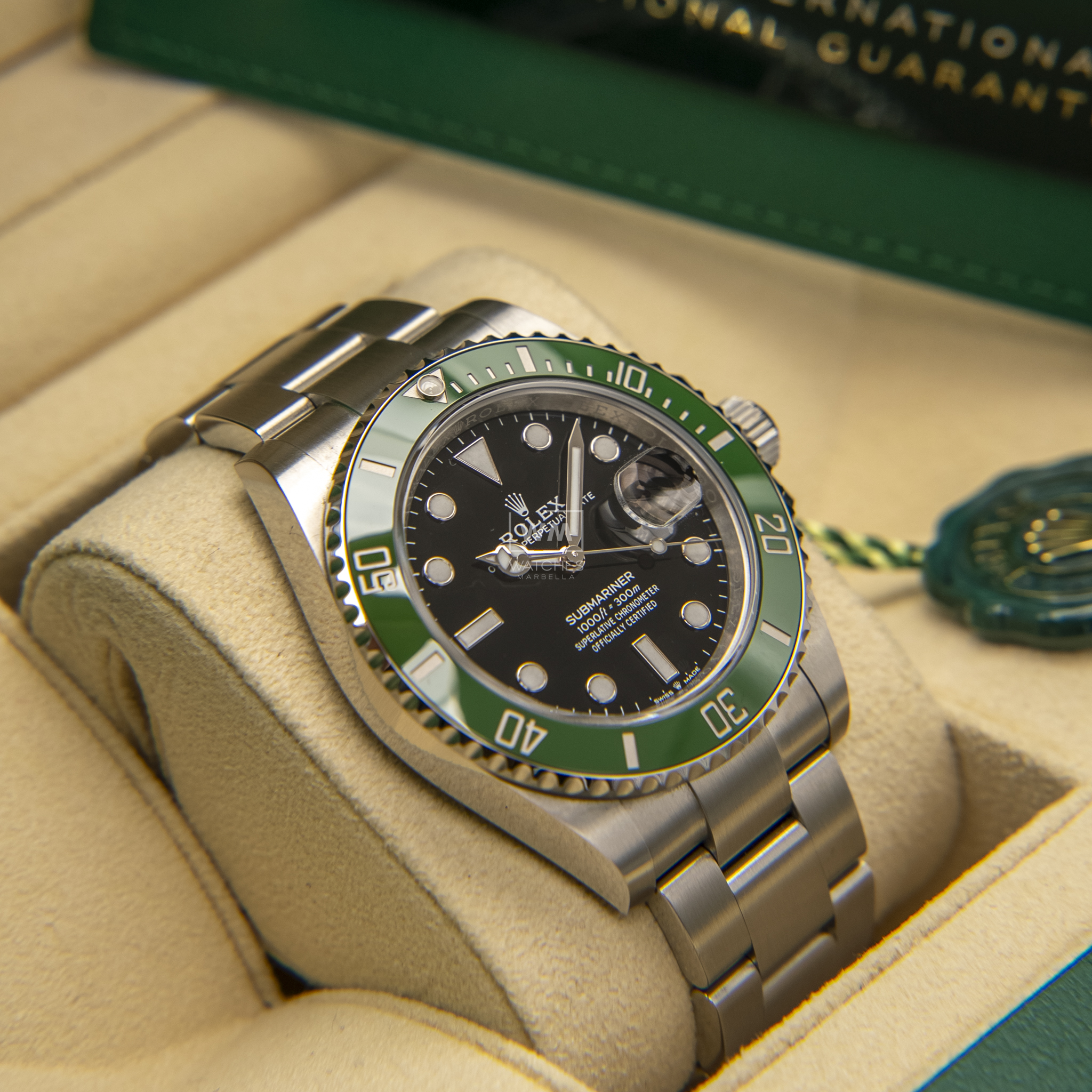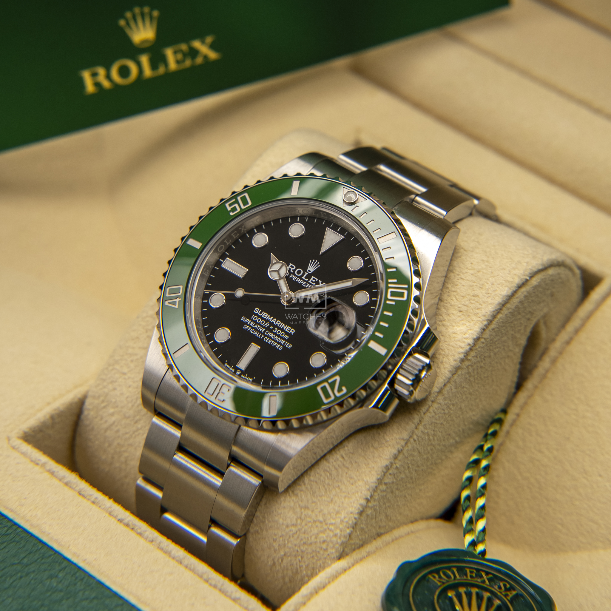 NO vendemos réplicas. Los relojes clasificados como «sin usar» incluirán la caja original, el manual de instrucciones y la tarjeta/certificado de garantía (a menos que se indique lo contrario). Los relojes clasificados como «pre-owned» (de segunda mano) son también verificados como auténticos y en excelente estado de funcionamiento, sin piezas de recambio no originales. Para relojes que no incluyan su caja original, Watches Marbella proporcionará una caja de la tienda.